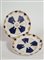 Coppia di piatti in porcellana dipinta blu e rossa con decorazioni geometriche, XIX sec. (rotture).