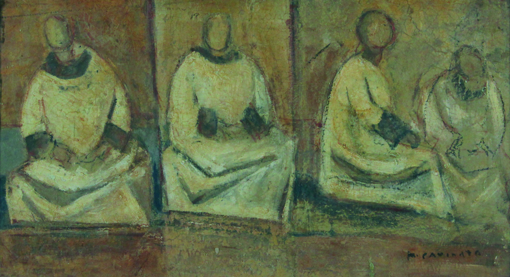 Lotto 518 | Paolo Cavinato, Senza titolo, olio su tavola, cm. 30x54, firmato in basso a...