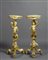 Coppia di guéridon in legno dorato, fusto sagomato a putto, su tre piedi...