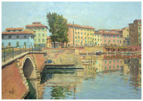 GIANCARLO LANDI Firenze 1937 L’isolotto Olio su tela 50 x 70. Firma in b. a...