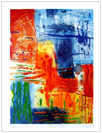 ANTONIO CORPORA Tunisi (Tunisia) 1909 – Roma 2004 Mare d’Oriente 1996 Litografia a colori es.51/250. Firma in b. a d., titolo e data in b. al c., timbro a secco in b. a s. (70 x 50 foglio – 50,8 x 36 lito.) B.A.: 100