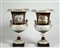 Coppia di vasi di forma medicea in porcellana dipinta, prese con teste di...