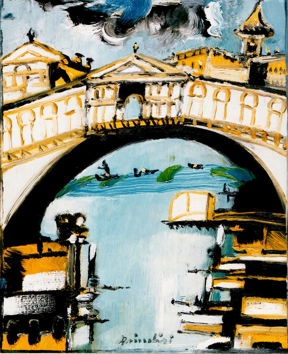 Remo Brindisi "Ponte di Rialto" - Olio su tela - cm 41x33 - Firma in basso al centro - Autentica dell'artista su foto