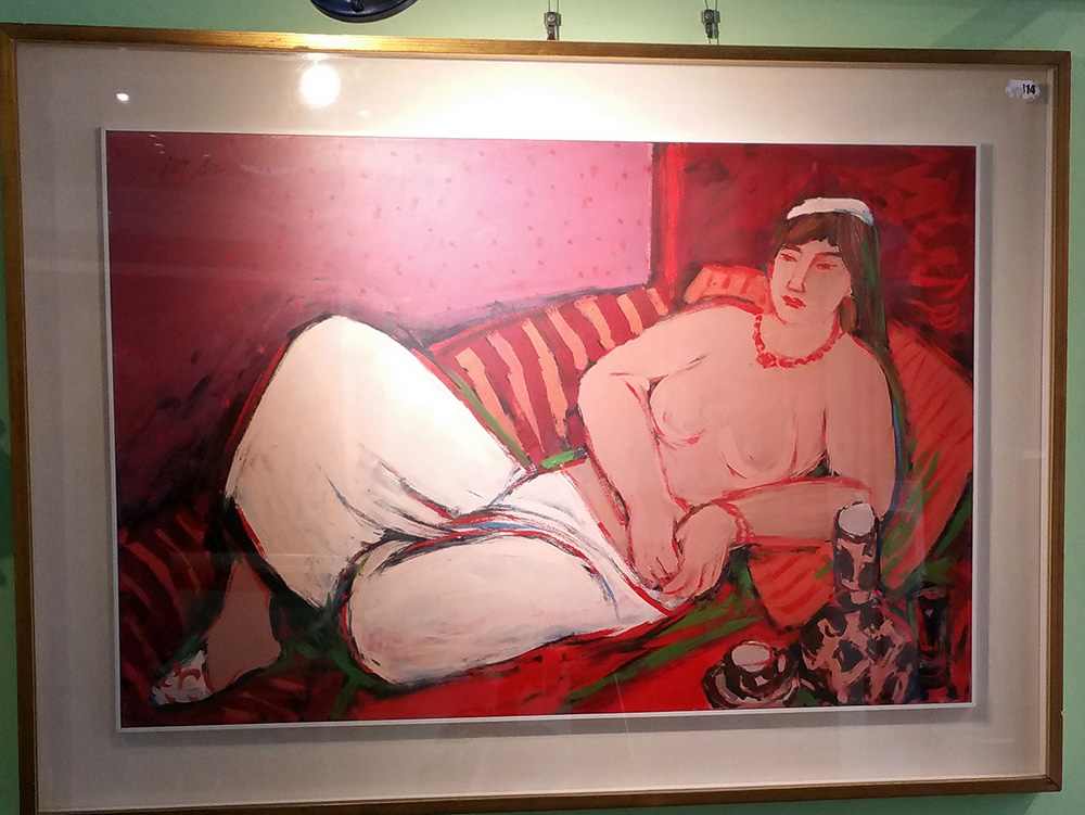 Giulio Da Milano "Odalisca con pantaloni bianchi" - Tecnica mista su carta rintelata - cm 60x90 - Firmaa in alto a sx - Opera incorniciata - Autentica dell'artista su foto
