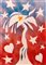Mario Schifano "Oasi con stelle e cuori" 1981 - Acrilici su tela - cm 100x70 - Firma in basso al centro - Opera di provenienza collezione privata dichiarata non falsa dal Tribunale di Bassano del Grappa con sentenza n. 325/04 del 17.11.04 divenuta irrevocabile