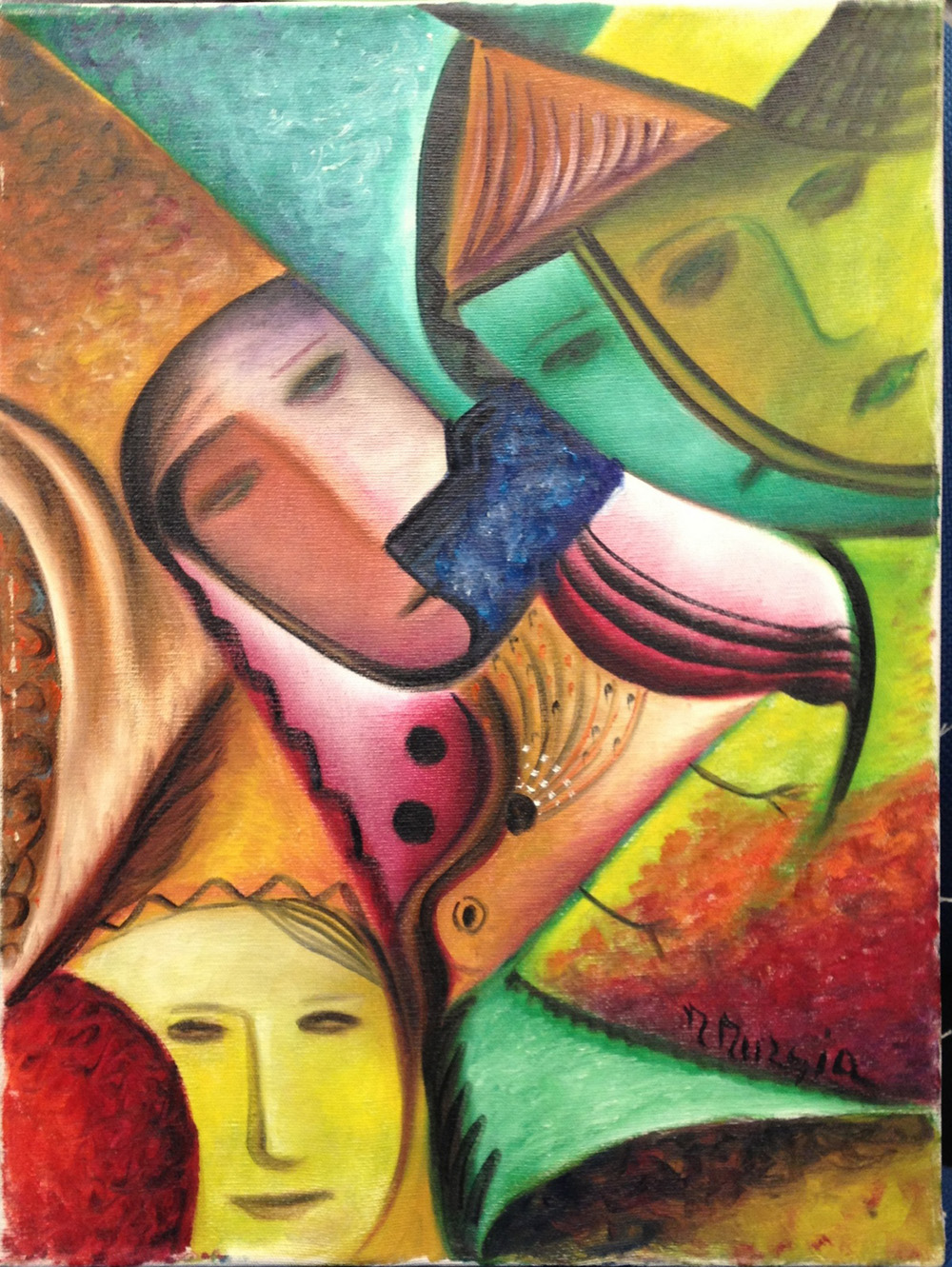 Maria Murgia "Maschere" 1994 Olio su tela cm 40x30 - Firma in basso dx e sul retro - Autentica dell'artista su foto