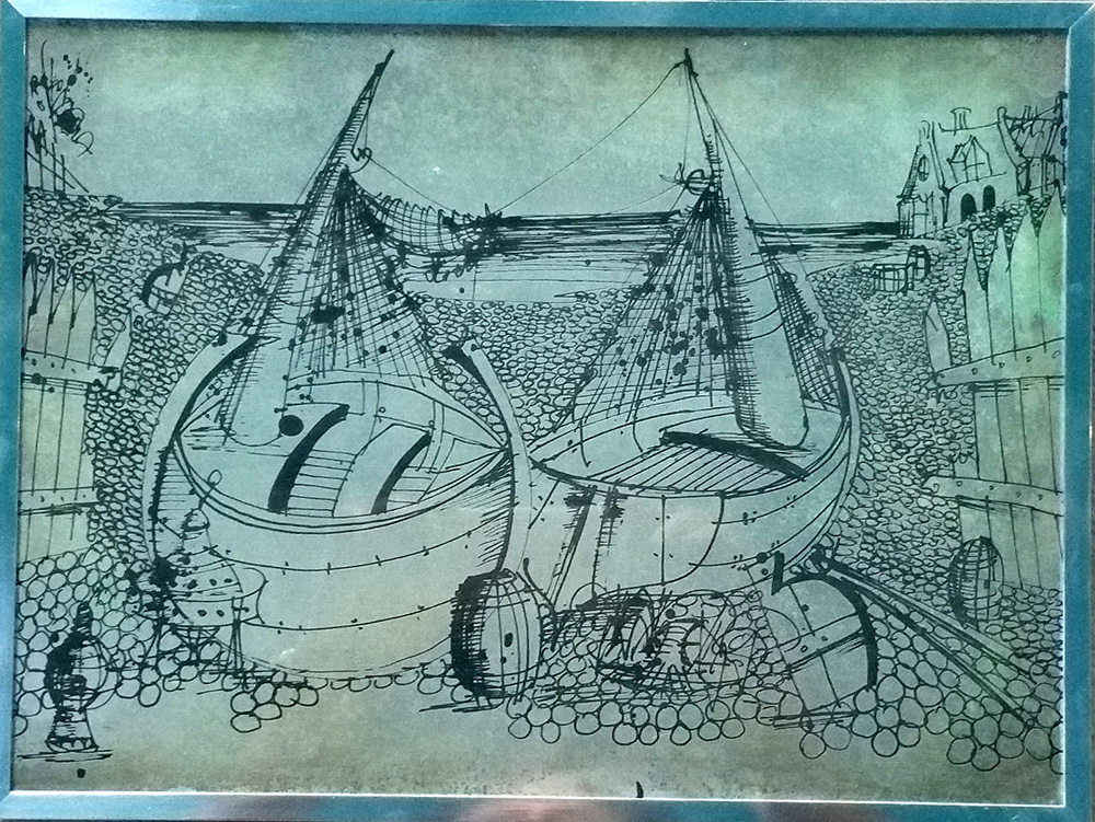 Gennaro Picinni "Barche" - Incisione su lastra d'argento titolo 800/1000 peso lastra kg 0,5 - cm 30x40 - Esemplare n. 98/100 - Opera incorniciata
