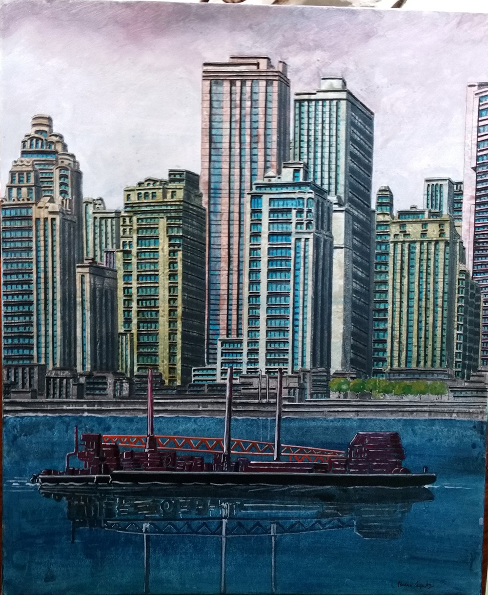 Tonino Caputo "East River" - Olio su tela - cm 60x50 - Firma in basso a dx - Autentica dell'artista su foto