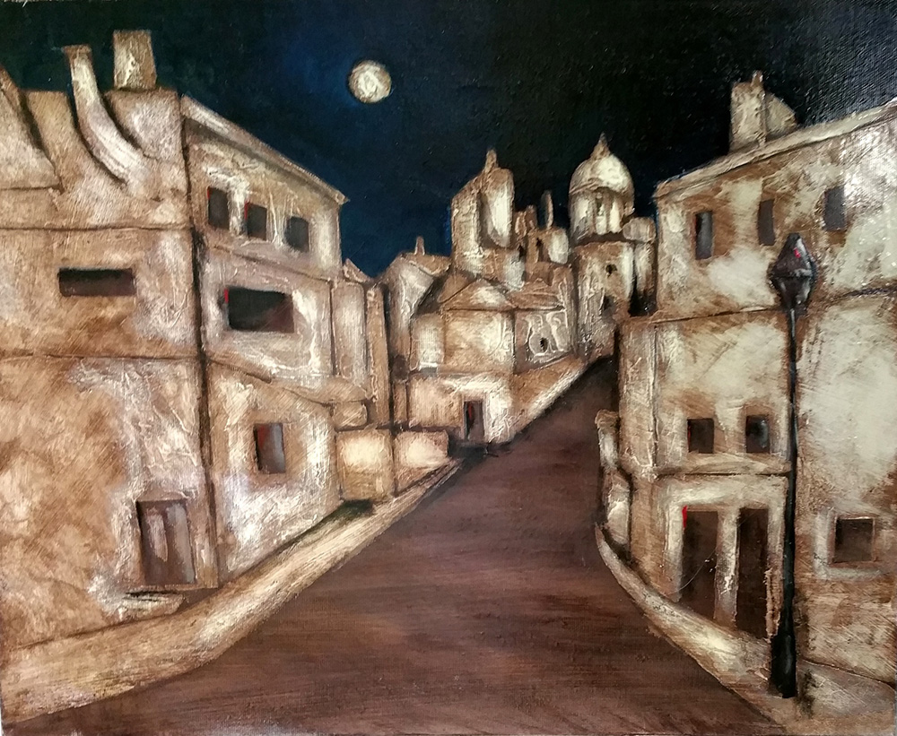 Bruno Landi " Notturno" 2009 - Olio su tela cm 40x50 - Autentica e Archivio dell'Artista su foto