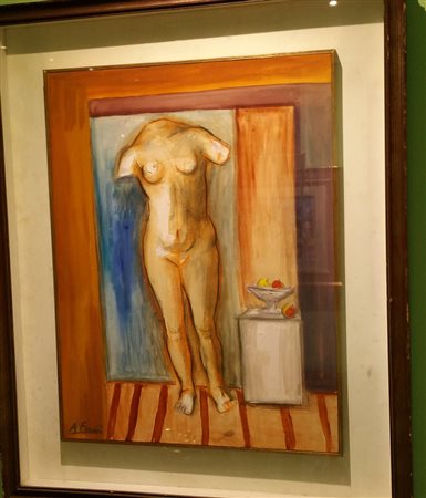 Achille Funi "Senza titolo" 1941 - Tecnica mista su carta applicata su tavola - cm 55x42 - Firma in basso a sx - Opera ben incorniciata - Autentica su foto Galleria L'Alfiere Arte TO