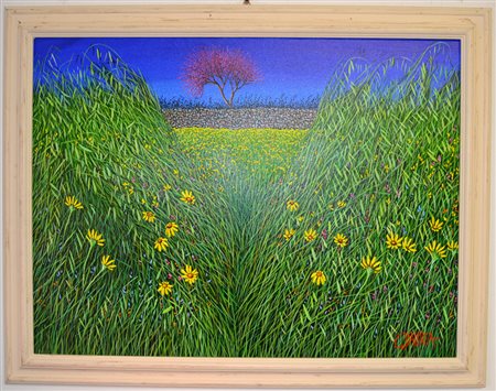 Giovanni Daurea "Campo di fiori" - olio su tela cm 60x80 - Autentica su foto