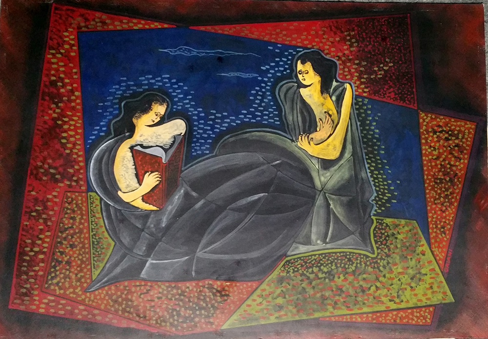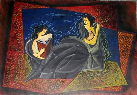 Pippo Oriani "La DROLE COUPLE" Periodo Parigino 1929/32 CM 64X44 Encausto su...