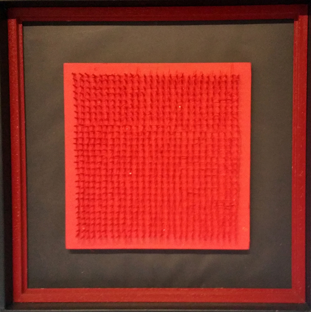 Bernard Aubertin "Chiodi rossi su tavola" - cm 40x40 - 1970 - Archivio Rovetta su foto
