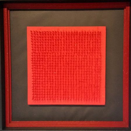 Bernard Aubertin "Chiodi rossi su tavola" - cm 40x40 - 1970 - Archivio...