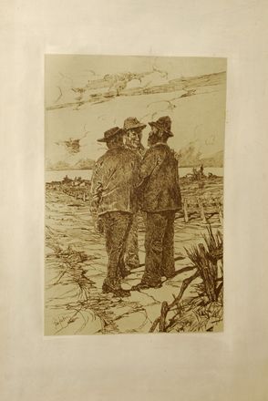 Giovanni Fattori (Livorno, 1825 - Firenze, 1908) TRE CONTADINI IN CONVERSAZIONE, 1884 Litografia a penna, in bistro su carta sottile di mm. 313X206 applicata su cartoncino di mm. 475X325. Esemplare della serie 20 ricordi dal vero, cartella stampata nel 1884 nella prima tiratura, curata dall’Artista. Bibliografia. 1983, A.Baboni- A.Malesci, Giovanni Fattori. L’opera incisa, Edizioni Over, Tav. CCIV. 1987, A. Baboni , Le incisioni di Giovanni Fattori nella collezione Franconi, Edizioni Pananti, Tav. 213.