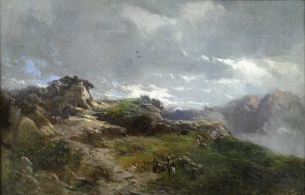 Eugenio Gignous (Milano, 1850 - 1906) TEMPORALE IMMINENTE Olio su tela, cm. 34x52 Firma in basso a destra. Sul verso: etichetta galleria Gussoni, Milano