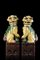 Coppia di leoni buddhisti in ceramica smaltata a tre colori, uno con...