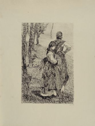 Giovanni Fattori (Livorno, 1825 - Firenze, 1908) le gabbrigiane Acquaforte su rame, mm.336x222 (lastra), mm.507x376 (foglio) Bibliografia. 1983, A.Baboni-A.Malesci, Giovanni Fattori. L’opera incisa, Edizioni Over, Tav.CLVII. 1987, A. Baboni , Le incisioni di Giovanni Fattori nella collezione Franconi, Edizioni Pananti, Tav. 107.