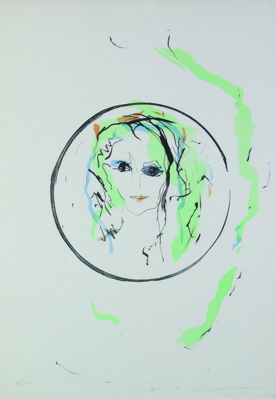 Ernesto Treccani, Volto in Ovale, litografia a retouche', cm. 70x50, es. XVII/XX, firmata in bassa a destra, certificato di autenticità di Eurart MS al retro