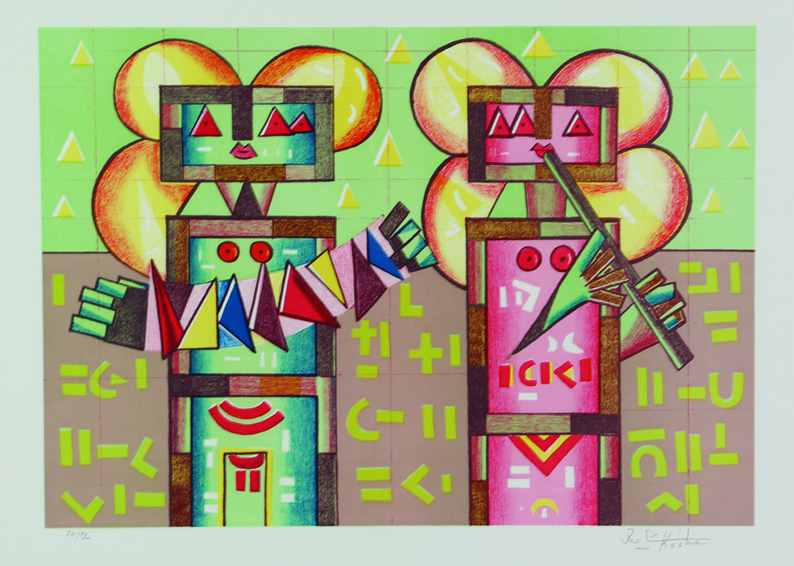 Lotto 25 | Ibrahim Kodra, Musicanti, (1980), litografia su carta, cm. 50x70, es. 50/120,...