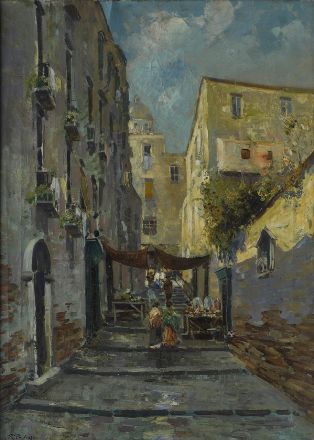 Pasini VICOLO Olio su tela, cm. 67x48 Firma in basso a sinistra.