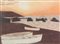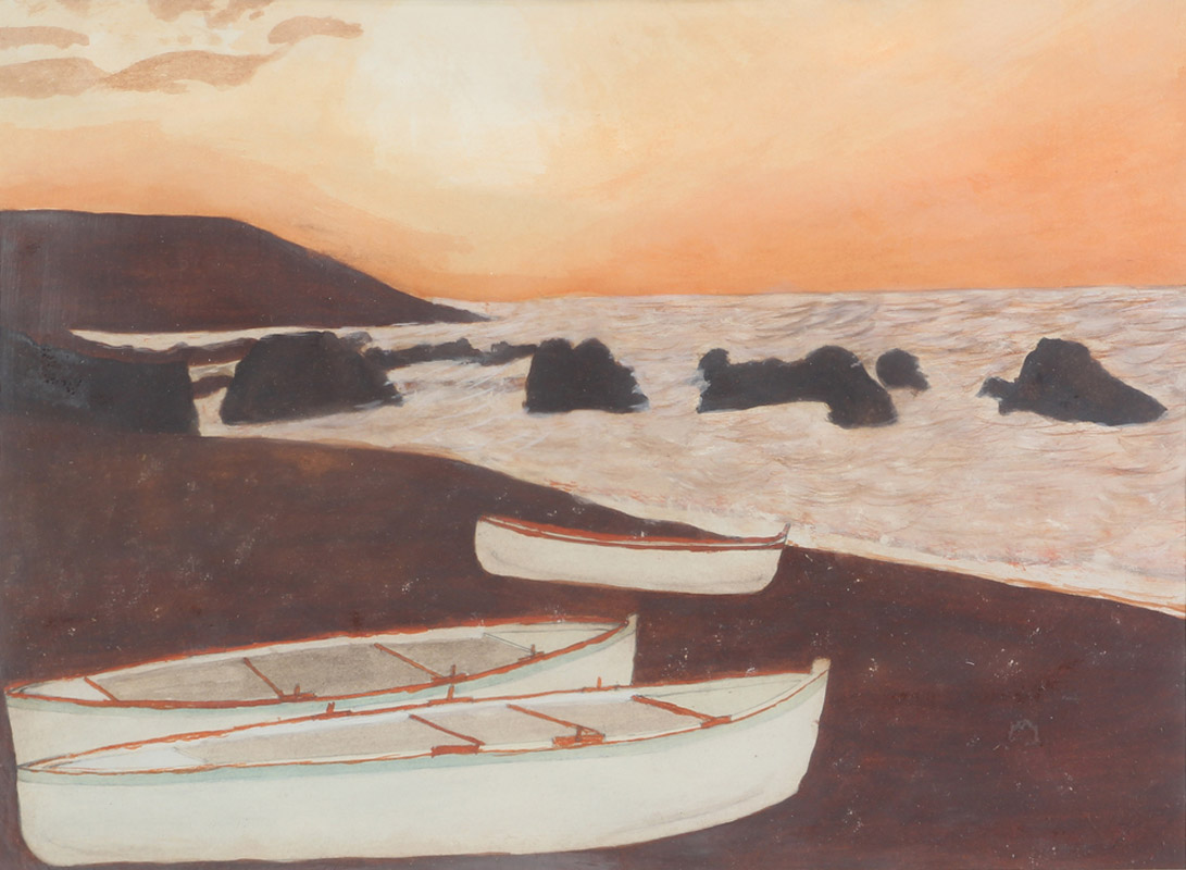 Ignoto, Paesaggio con barche, tecnica mista su carta, cm. 31x41, siglato in basso a destra
