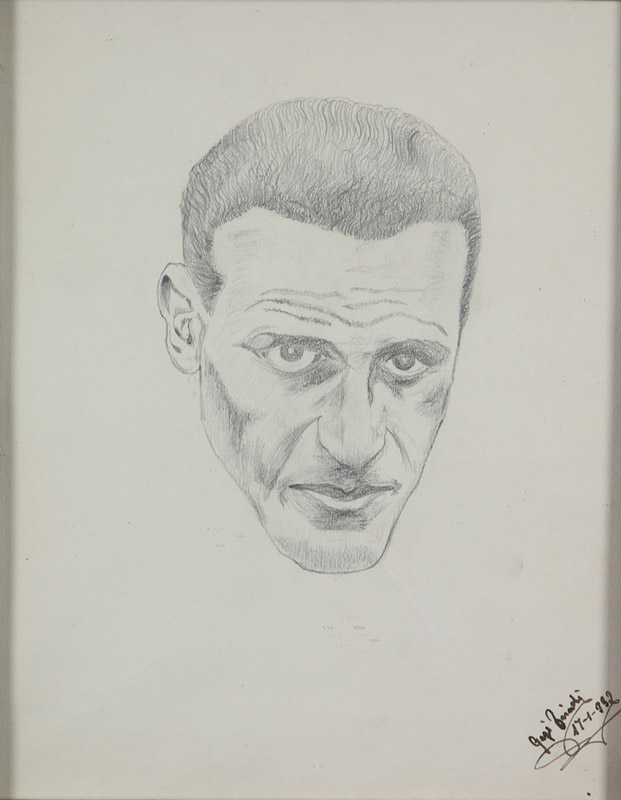 Ignoto, Ritratto dell'Ostacolista Luigi Facelli, Campione d'Italia di Corsa ad Ostacoli, 1932, disegno a matita su carta, cm. 26x21, firma non decifrata e data in basso a destra