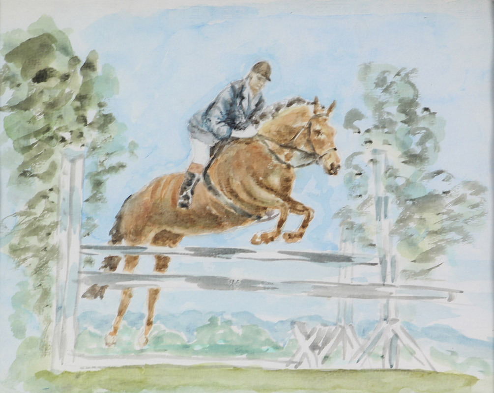 Anonimo, Salto ad Ostacoli, acquerello su carta, cm. 24x30, opera non firmata