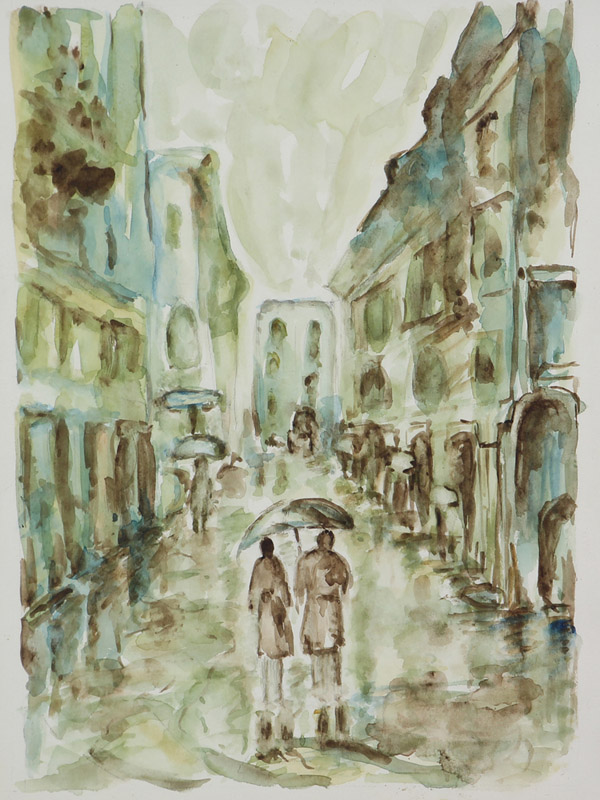 Lotto 140 | Anonimo, Giornata di Pioggia, acquerello su carta, cm. 30x23, opera non firmata