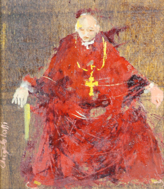 Angelo Tassi, Cardinale, 1978, olio su tavola, cm. 15x13, firmato in basso a...