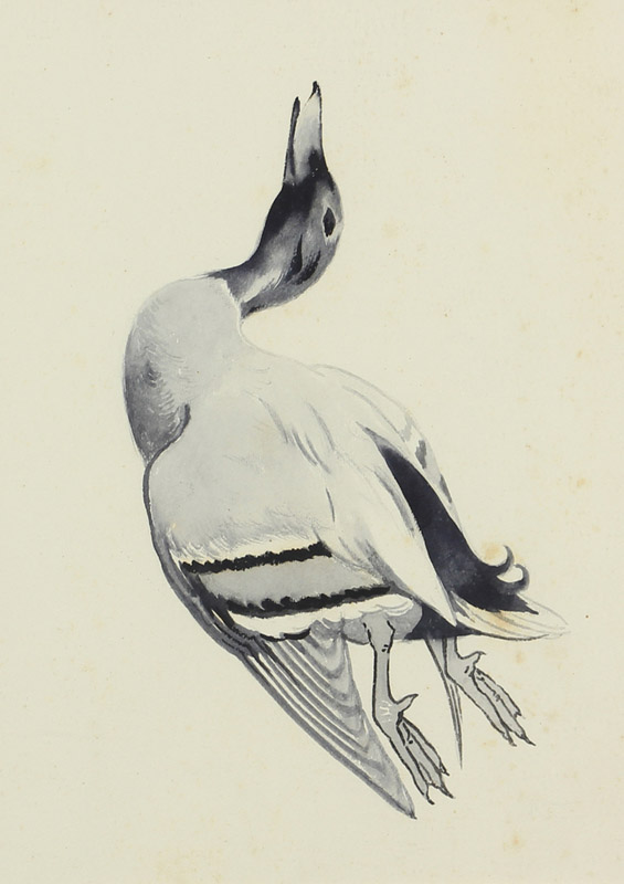 Mario Norfini, Anatra, acquerello su carta, cm. 32x24, firma sbiadita in basso a destra