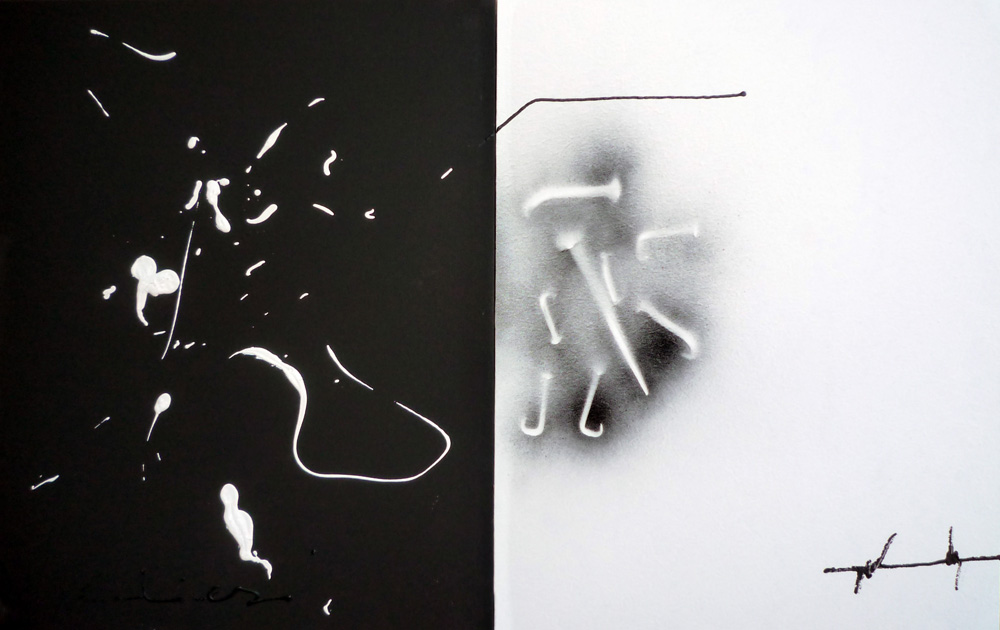 Giorgio Chiesi, Senza titolo, dittico, smalti colori su tela, cm.50x80, firmato in basso a destra