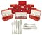 Cartier, servizio di 124 posate metallo argentato Francia, 1988 modello "Du Prince", composto da 26 forchette, 14 coltelli, 14 cucchiai, 14 forchette da frutta, 14 coltelli da frutta, 14 forchette da pesce, 14 coltelli da pesce e 14 cucchiaini, firmate, entro astucci rossi Cartier.