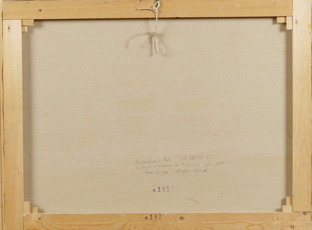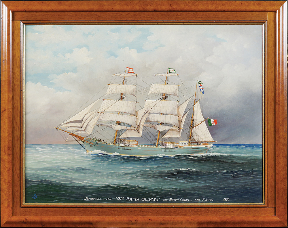Pittore Italiano XX Sec. 60x80 cm. "Brigantino a palo Giobatta Olivari", olio su tela, entro cornice