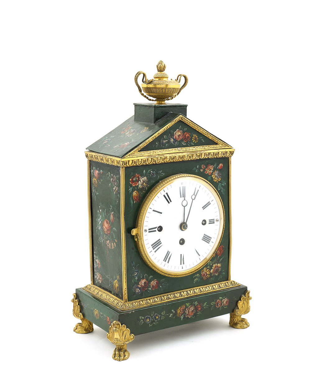 Lotto 182 | Pendola in bronzo e lacca Francia, XIX Sec. 28x16x10 cm. decorata in...