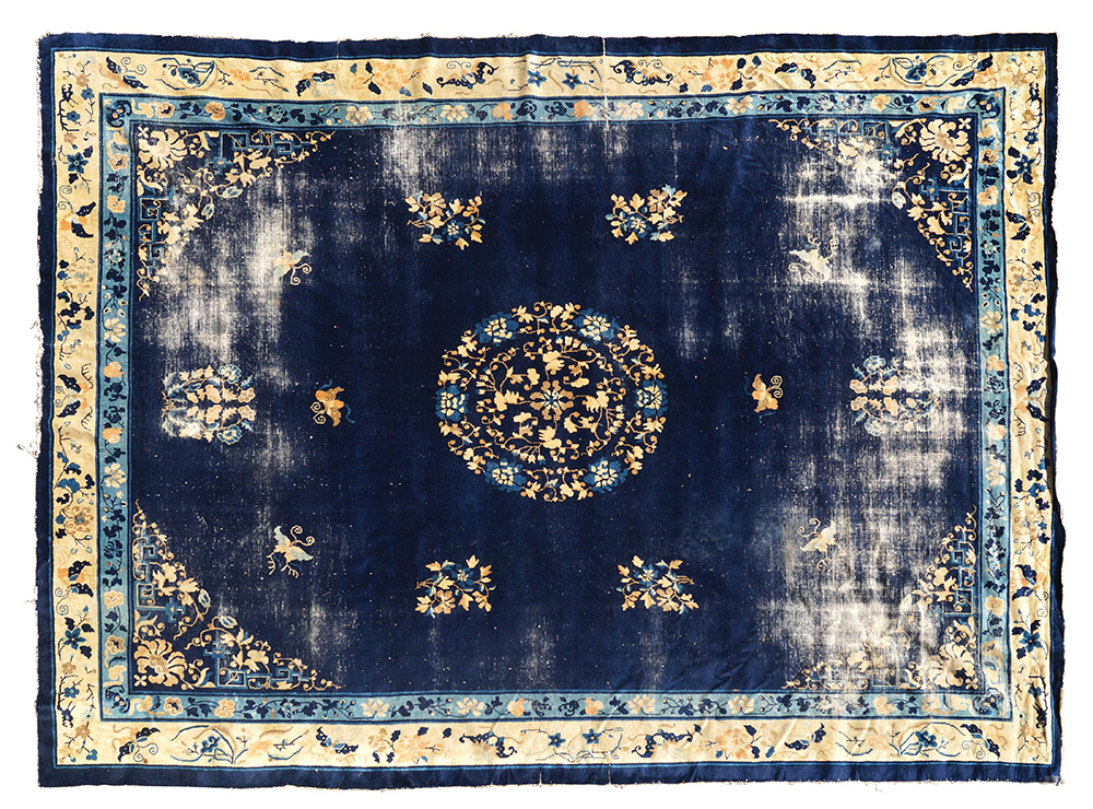 Lotto 188 | Tappeto Pechino Cina, XX Sec. 355x308 cm. a disegno floreale su fondo blu,...