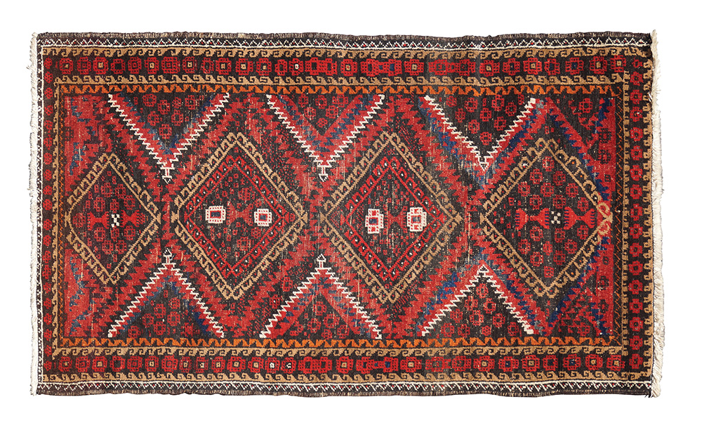 Tappeto Belucistan Asia centrale, vecchia manifattura 145x85 cm. a disegni geometrici e vegetali su fondo rosso, colori vegetali