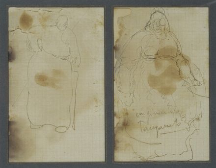 Lorenzo Viani (Viareggio, 1882 - Ostia, 1936) FIGURE Matita su carta, cm. 18x12 (ciascuno) Due disegni. (rotture).