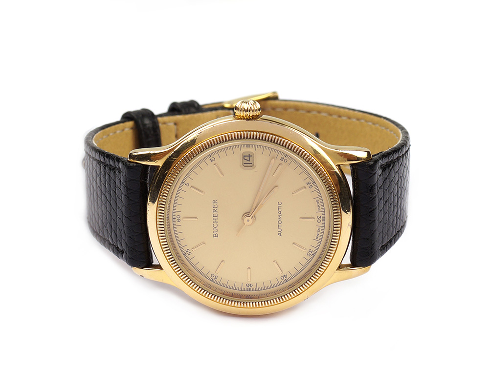 Bucherer Automatic, orologio da polso laminato oro, cassa tonda mm. 34, ref....