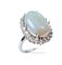 Anello in oro bianco 18kt con opale arlecchino anni 50/60 peso 9,2 gr. taglio cabochon, contornato da 11 diamanti taglio brillante ct 0,80 circa, misura 14