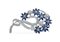 Spilla a motivo floreale in oro bianco 18 kt anni 50/60 peso 17,7 gr. con diamanti taglio brillante ct 1,40 circa e zaffiri taglio marquise ct 1,20 circa