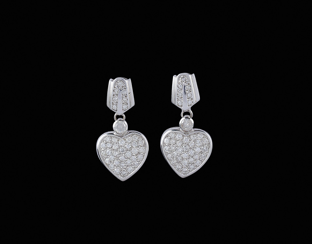 Orecchini in oro bianco 18kt e diamanti peso 7,9 gr. taglio brillante ct 1,50 circa con pendente a motivo di cuore
