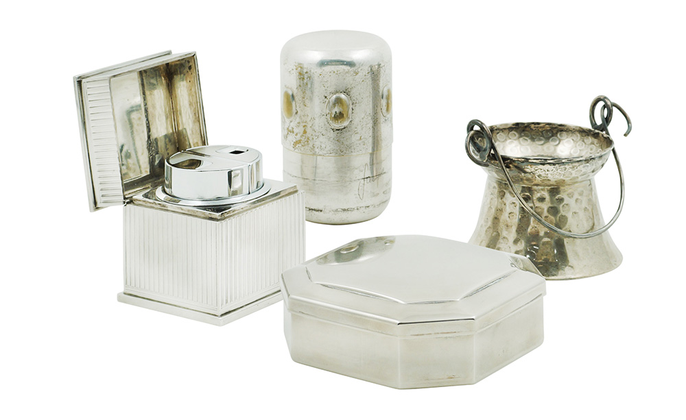Quattro oggetti in argento Italia, XX Sec. peso 700 gr. fogge misure e manifatture diverse