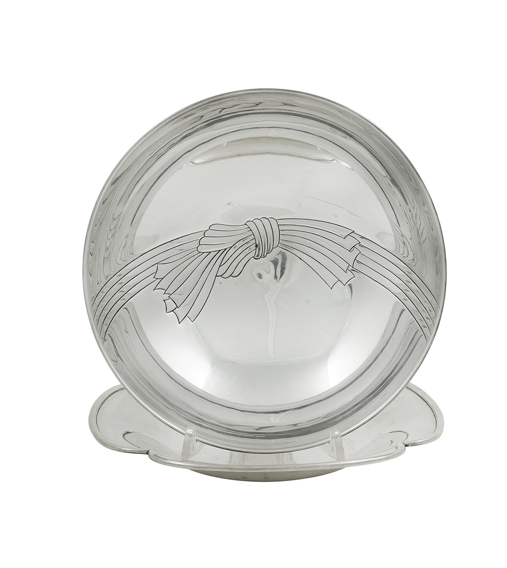 Gruppo di due oggetti in argento Italia, XX Sec. peso 570 gr. composto da una bowl ed un piatto, fogge, misure e manifatture diverse