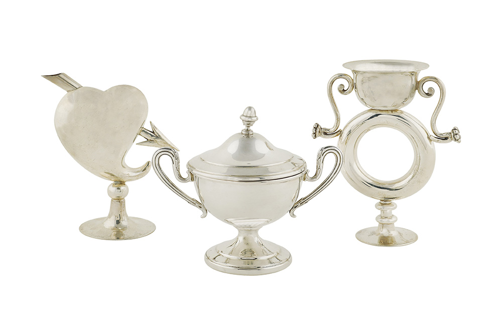Lotto 371 | Tre oggetti in argento Italia, XX Sec. peso 600 cm. fogge misure e...