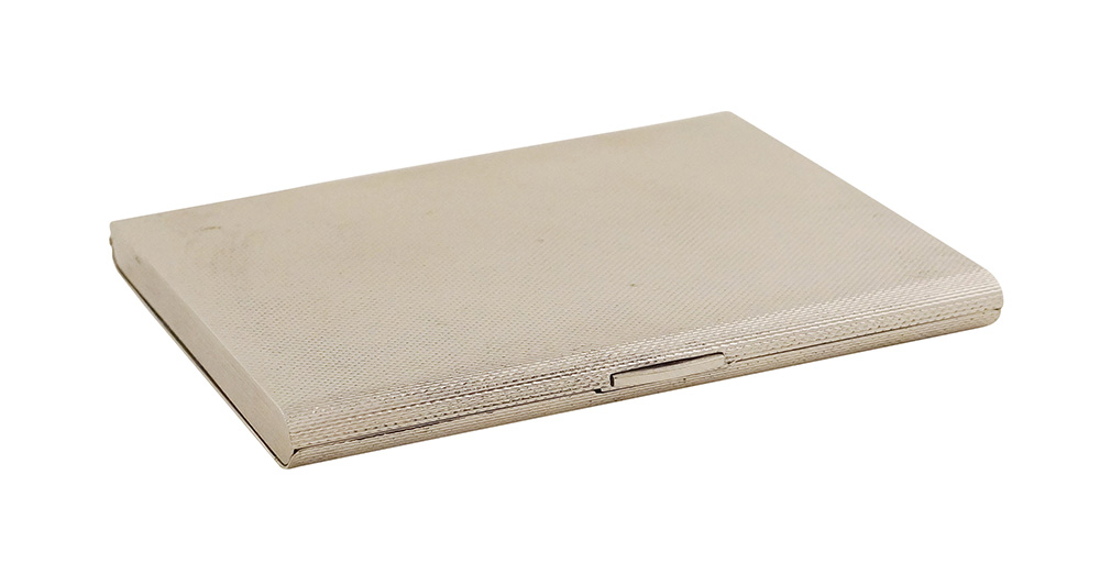 Scatola portasigarette in argento Italia, metà XX Sec. peso 167 gr. di forma rettangolare con superficie zigrinata, 10x11,5 cm.
