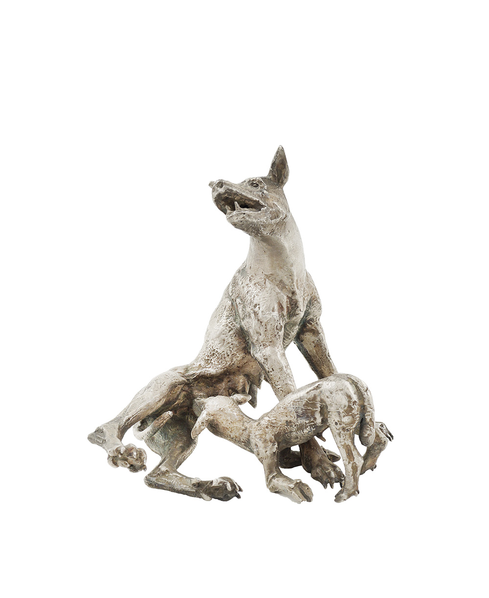 Vincenzo Gaetaniello Pomigliano d'Arco 1935 peso 735 gr. "Solidarieta", scultura in argento es. IV / V, firmata e numerata in basso, opera ideata per la gioelleria Petochi di Roma e realizzata in argento 925 nel 1970 circa, h. cm.16