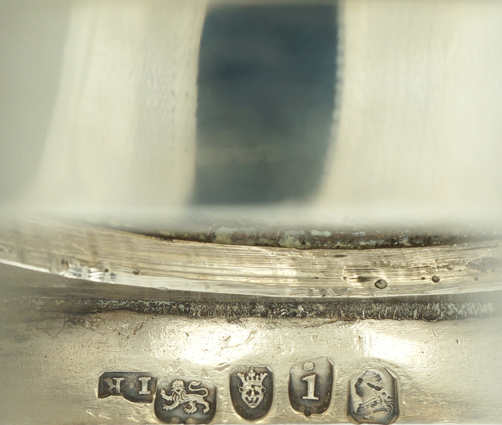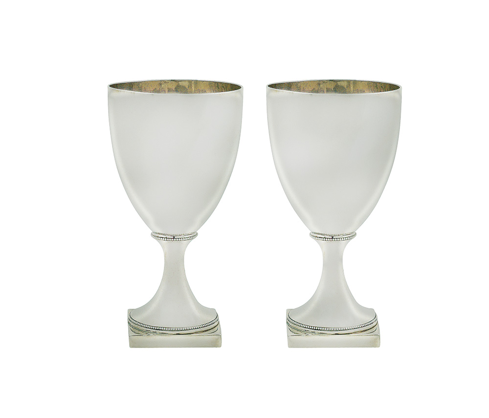Coppia di bicchieri a calice in argento Londra, Giorgio III 1784 peso 450 gr. corpo liscio su base squadrata, h. 17
