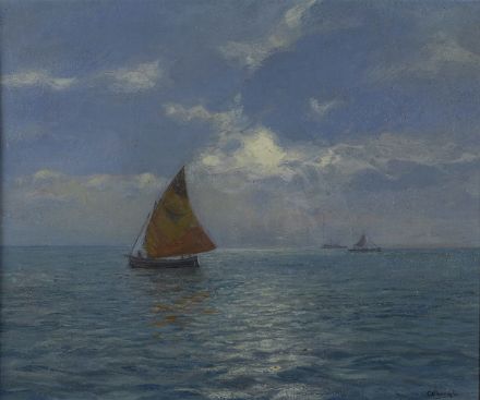 Carlo Passigli (Firenze, 1881 - 1953) MARINA Olio su compensato, cm. 42x52 Firma in basso a destra.