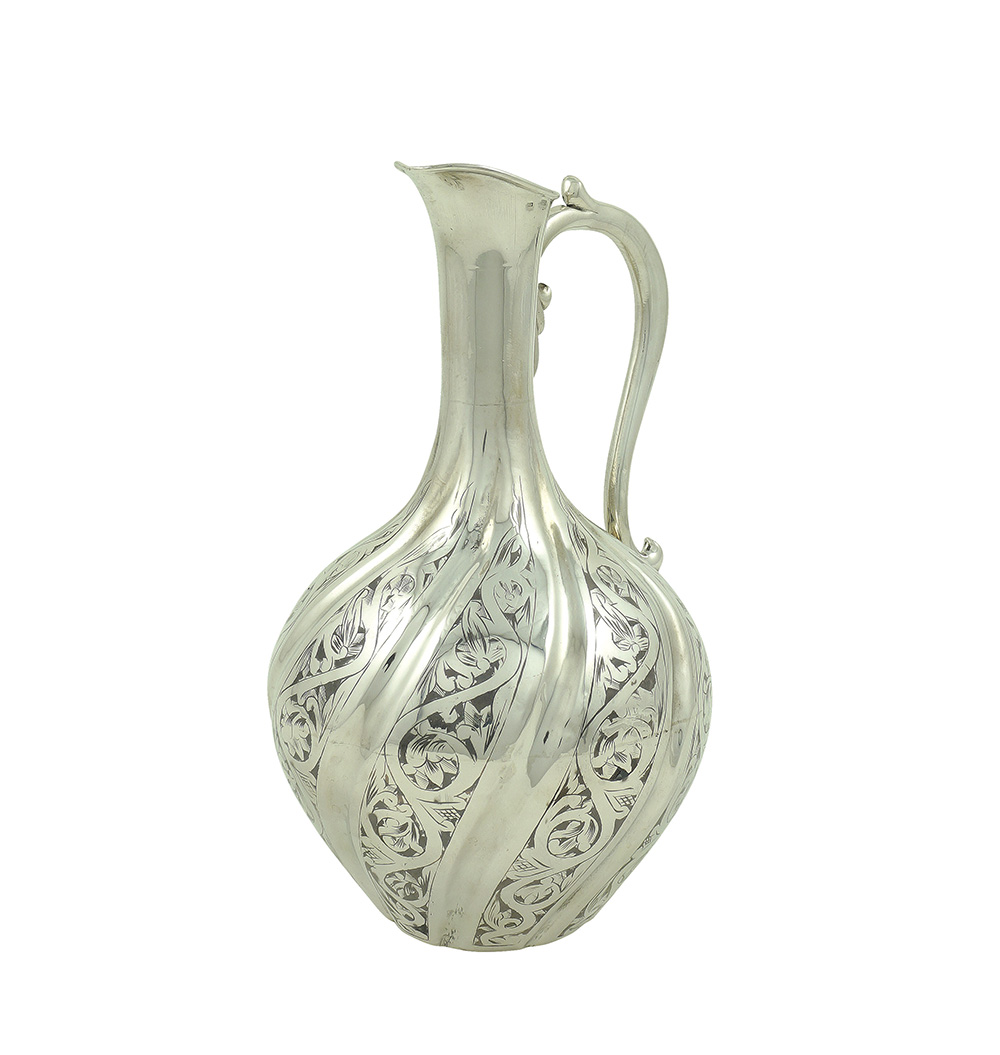 Piccolo versatoio in argento e niello Russia, dopo il 1926 h. 22 cm. corpo piriforme a torchon con manico a voluta, peso 276 gr.